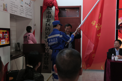 青島市市北區地震救援志愿者隊伍授旗暨防震減災宣傳教育基地揭牌儀式啟動