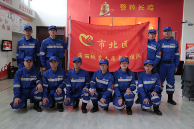 市北區區委常委副區長于洋為海麗地震志愿者救援隊授旗