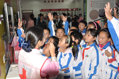 1031日,洛陽路第一小學、青島理工大學80余名學生,在《中華人民共和國突發事件應對法》七周年來臨之際,走進海麗雅集團應急安全教育培訓中心學習災難應急自救逃生的知識和技能。