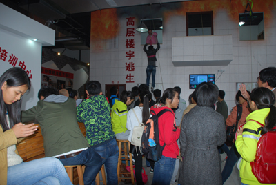 火災隱患查找、科學使用滅火器滅火、借助高層樓宇緩降器進行高層逃生、地震平臺體驗、結繩逃生、心肺復蘇、“119火災報警模擬系統”等等,體驗中心豐富的體驗項目將體驗者帶入另外一個世界,體驗者在講解員的引導下,認真學習各種應急逃生技能。理工大學的呂婷告訴講解員:“我在CCTV13《新聞1+1》看到過這款過濾式自救呼吸器,沒想到今天可以親自配戴體驗,學習火災逃生、高層樓宇緩降器的使用、心肺復蘇,對于我們現在這個年齡階段很重要也很有意義。”洛陽路第一小學的方文琪鼓勵身邊的同學:“高層緩降很刺激、很安全,你快點啊,一會就排不上號了。”
