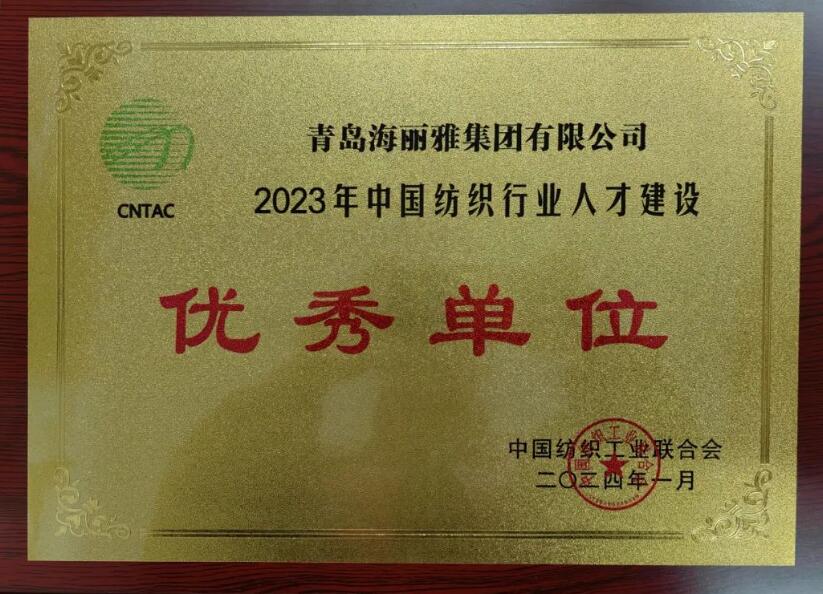 喜報|青島海麗雅集團榮獲“2023年中國紡織行業(yè)人才建設優(yōu)秀單位”稱號