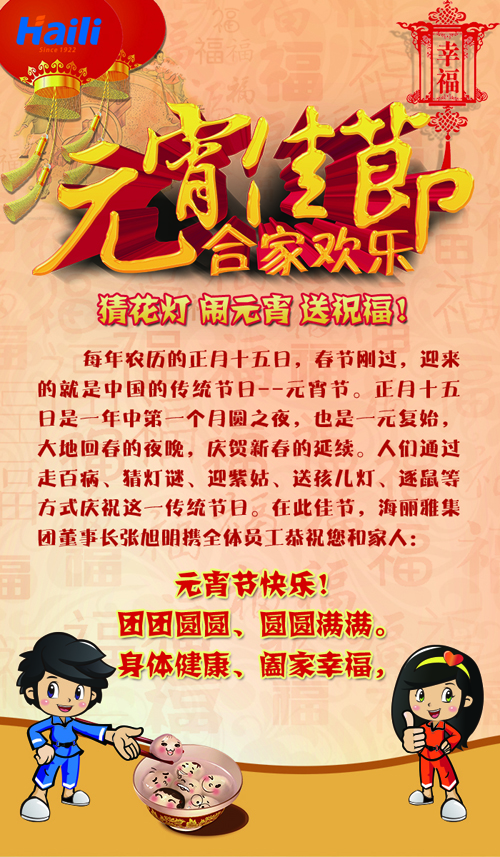 海麗雅集團董事長張旭明攜全體員工恭祝大家:元宵節快樂!