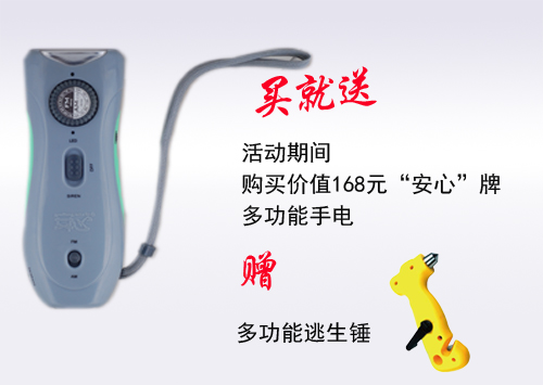 滿500元即可獲贈(zèng)”安心“牌多功能逃生錘、醫(yī)療包、水系滅火器、打火線任意1件。