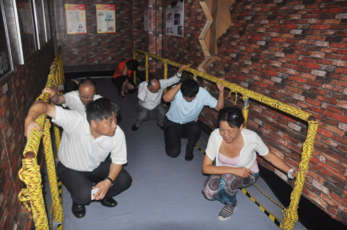 提到應急安全,兩年前人們會聯想到書本、黑板,但是在今天,更多的人脫口而出“青島市應急安全教育培訓中心”及它所孕育的“體驗式”應急安全培訓模式。在海麗雅集團董事長張旭明等領導陪同下,那日蘇副社長一行實地考察了培訓中心高科技“體驗式”互動設備、培訓接待運營模式,并近距離體驗了“地鐵應急逃生”、“3-6級地震”、“暴風雨”等項目,對“體驗式”應急培訓模式在有效提升群眾應急安全知識和技能中發揮的作用給予肯定。