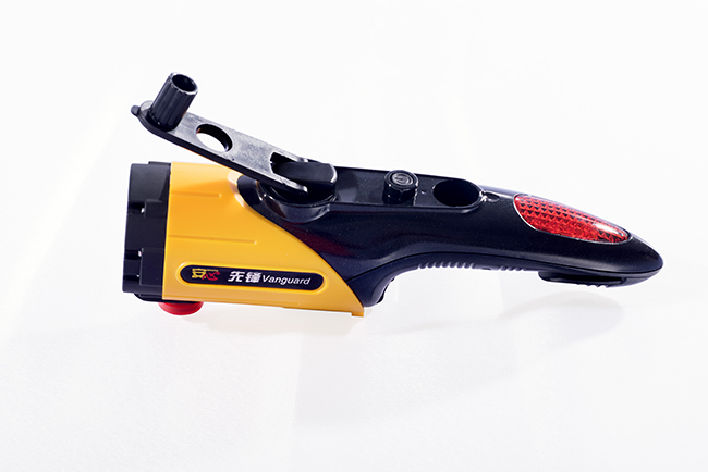 手搖發電,頭部有照明燈,可以用做手電筒;