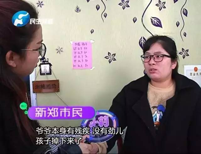 爺爺緊緊的拉著這個2歲多的孩子,不敢放手,大家趕緊報警并且找來了梯子和很多被子在下面……