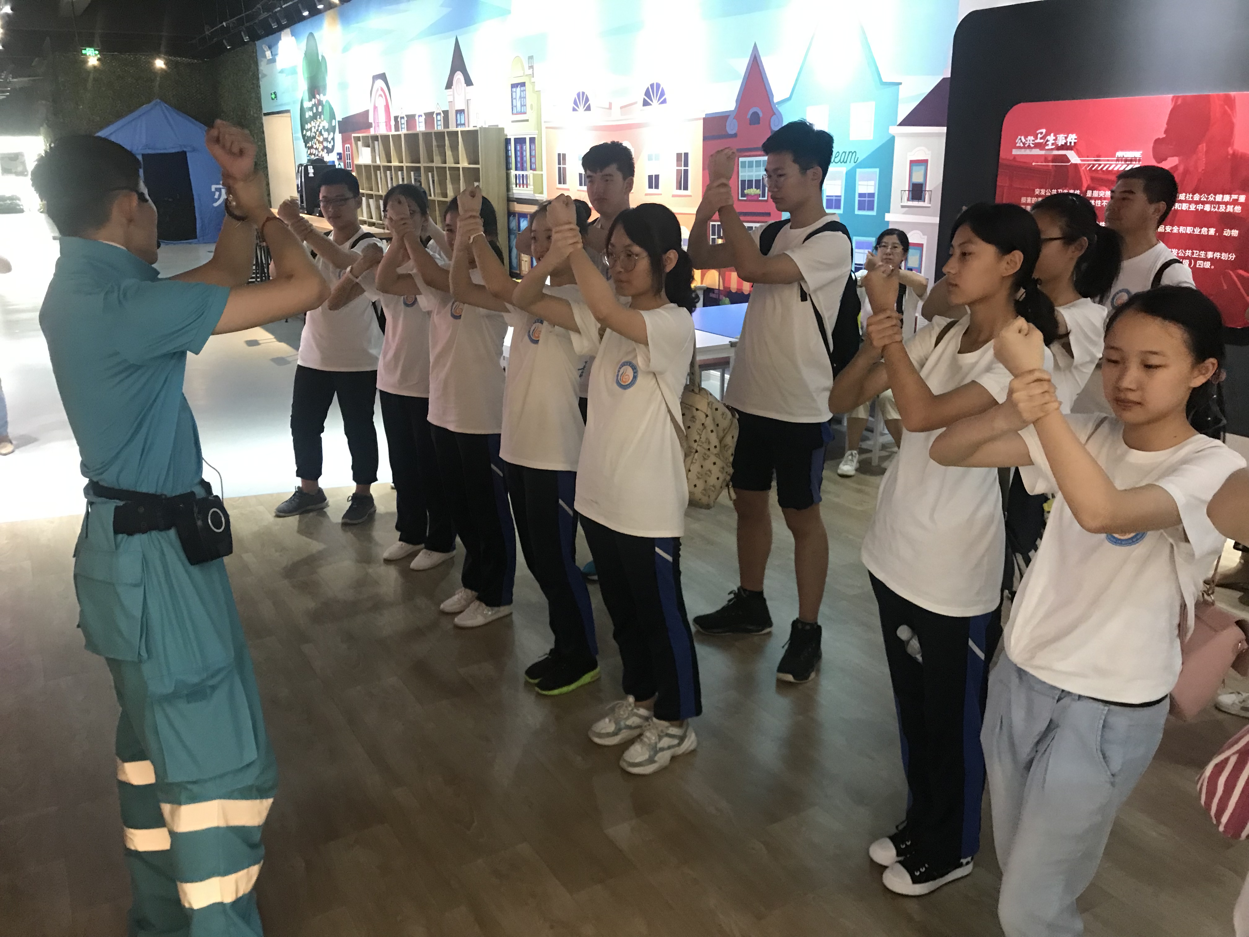 下午的安全應(yīng)急體驗(yàn)課程來(lái)到了青島西海岸新區(qū)應(yīng)急安全體驗(yàn)教育基地。在基地老師的帶領(lǐng)下,老師、家長(zhǎng)、學(xué)生一起積極參與互動(dòng),在地震、暴風(fēng)雨、火災(zāi)等 災(zāi)難體驗(yàn)館內(nèi)感受災(zāi)難的真實(shí)場(chǎng)景,學(xué)習(xí)高空逃生方法,親歷高空逃生過(guò)程,在VR場(chǎng)景中排查安全隱患,零距離體驗(yàn)急救過(guò)程,深刻學(xué)習(xí)到毒品和濫用藥物的危害等,通過(guò)這種共同體驗(yàn)式學(xué)習(xí)活動(dòng),不僅學(xué)習(xí)到了生動(dòng)鮮活的安全知識(shí),還掌握了心肺復(fù)蘇、簡(jiǎn)易擔(dān)架制作、安全繩結(jié)等應(yīng)急自救互救知識(shí)與技能。