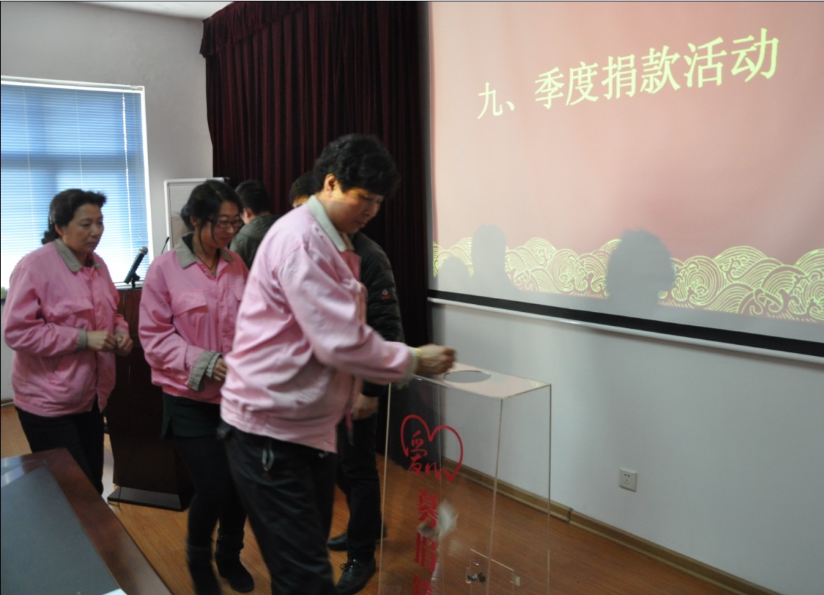 會(huì)中,全體培訓(xùn)人員通過(guò)朗誦《海麗公司八榮八恥》、合唱《海麗之歌》、觀看公司宣傳片,以及愛(ài)心基金會(huì)季度捐款活動(dòng),受到了海麗濃厚文化的潛移默化影響,更增加了對(duì)企業(yè)的熱愛(ài)之情。