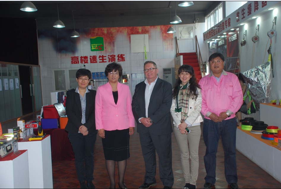 2014年4月30日,國家行政學院應急專家和德國聯邦救援署的負責人,在青島市應急辦的陪同下來到億和海麗公司進行調研考察。德國專家等參觀了公司展廳,對公司應急自救產品的研發思路表示肯定,并特別指出公司研發的逃生繩套裝非常適合救援和自救,表示將把億和海麗公司引見給德國生產、銷售應急救援和自救類產品的知名企業,以促進兩國應急自救產品發展的溝通和交流。