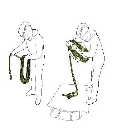繩袋是儲存和運輸你的行李非常好方法繩索。繩袋提供足夠的空間,打包并用防水布保護繩索不受污染和濕氣的影響,將繩索的一端系在拐角處的系帶上,以防止繩索在轉彎時無意中穿過保護裝置放下。然后跑把繩索穿過你的手,疊在地板上防水油布領頭的攀巖者現在可以系在自由端。當你繼續前進時,把自由端系在防水布上的這些空調環上,把它卷起來,固定在繩袋里。